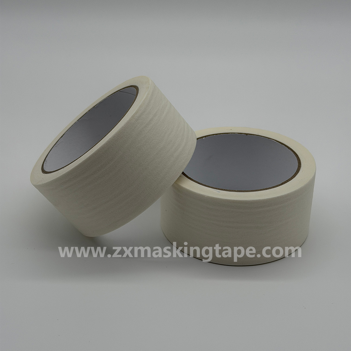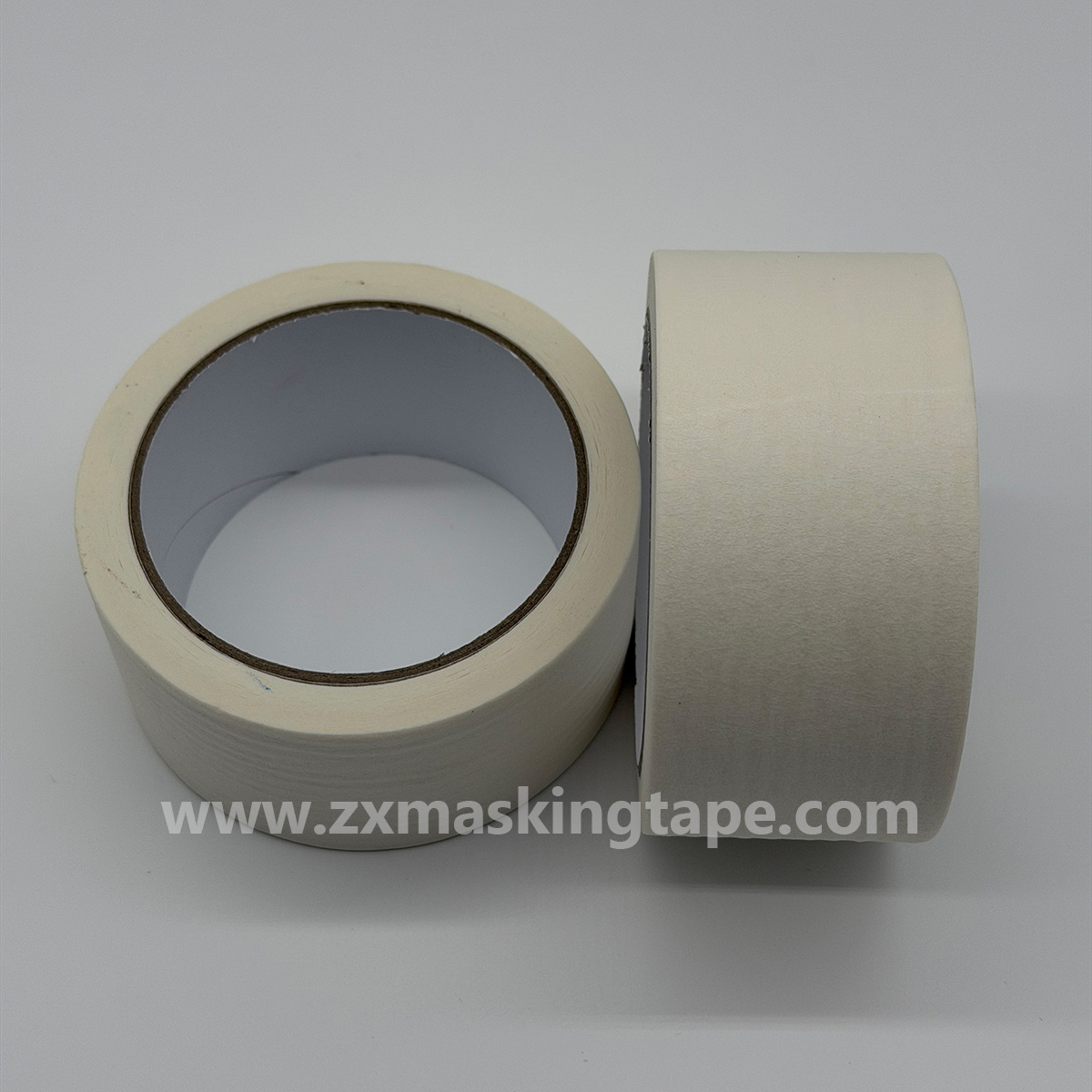 White masking tape with medium-low adhesion, designed for delicate surfaces. Ideal for painting, automotive masking, and clean removal without residue.