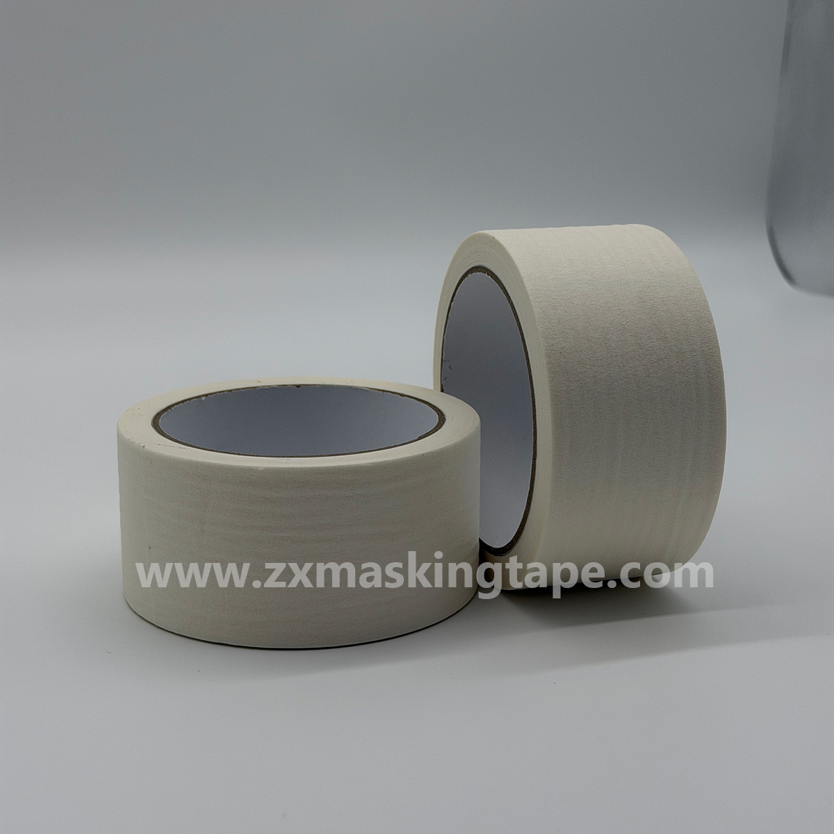 White masking tape with medium-low adhesion, designed for delicate surfaces. Ideal for painting, automotive masking, and clean removal without residue.